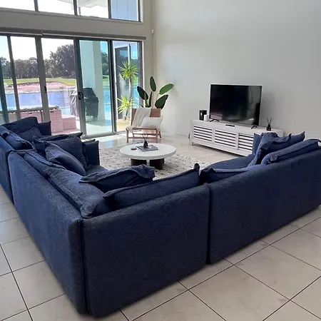 Located 0.7 km from the Pelican Waters Golf Club, the 2-bedroom Lakefront Luxury Golf & Beach Pelican Waters villa offers a private pool for guests to relax by. Located approximately 10 minutes by car from Leach Park, this accommodation boasts a terrace with views of the pool.